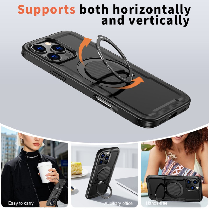 Suojaa iPhonesi tyylikkäästi tällä innovatiivisella MagSafe-yhteensopivalla kotelolla. Kotelossa on 360° kääntyvä jalusta, joka tarjoaa paremman suojan ja tekee handsfree-katselusta helppoa. Kestävä hybridirakenne ja tarkat leikkaukset optimaalista käyttöä varten.
