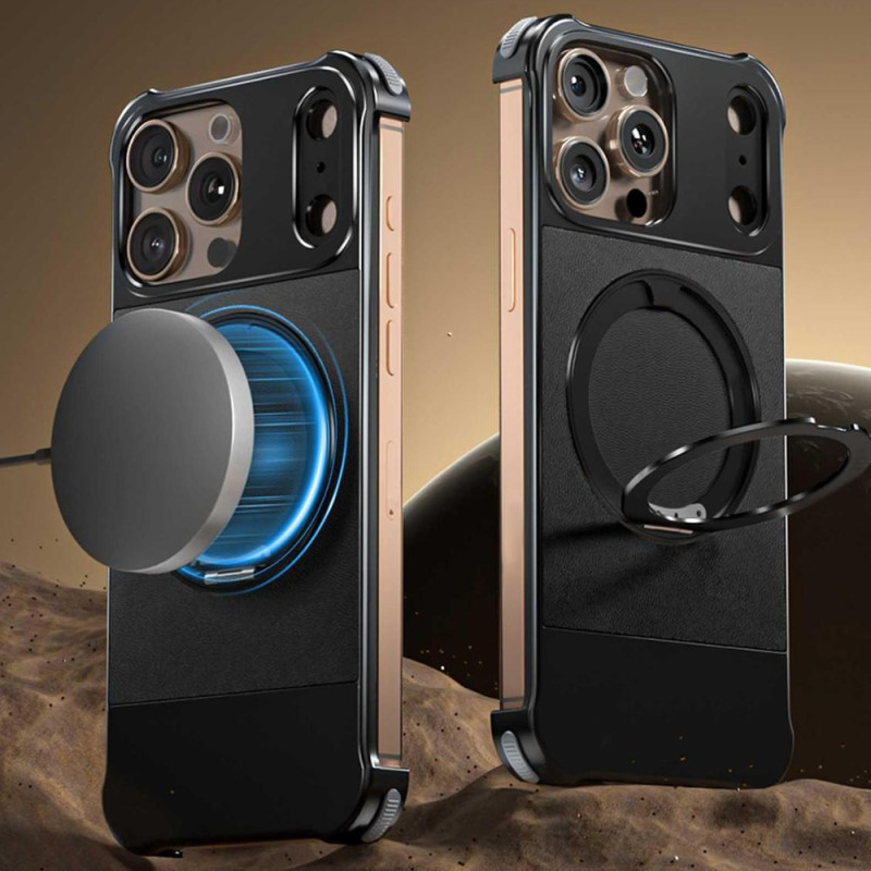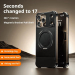 Tyylikäs magneettikotelo iPhone 13 Pro Max -puhelimelle, jossa on integroitu monitoiminen jalusta. MagSafe-yhteensopiva ja langaton lataus. Reunaton muotoilu vahvistetulla kulmasuojalla. Helppo liukuva asennus.