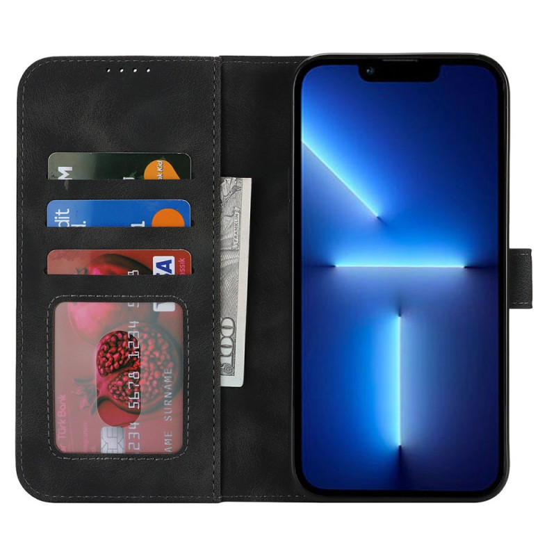 Monikäyttöinen lompakkokotelo premium PU nahkaa iPhone 13 Pro Max / 12 Pro Max. Säilytä kortit, käteinen ja suojaa puhelimesi tyylillä. Turvallinen magneettisuljenta ja integroitu tukitoiminto optimaalista mukavuutta varten.