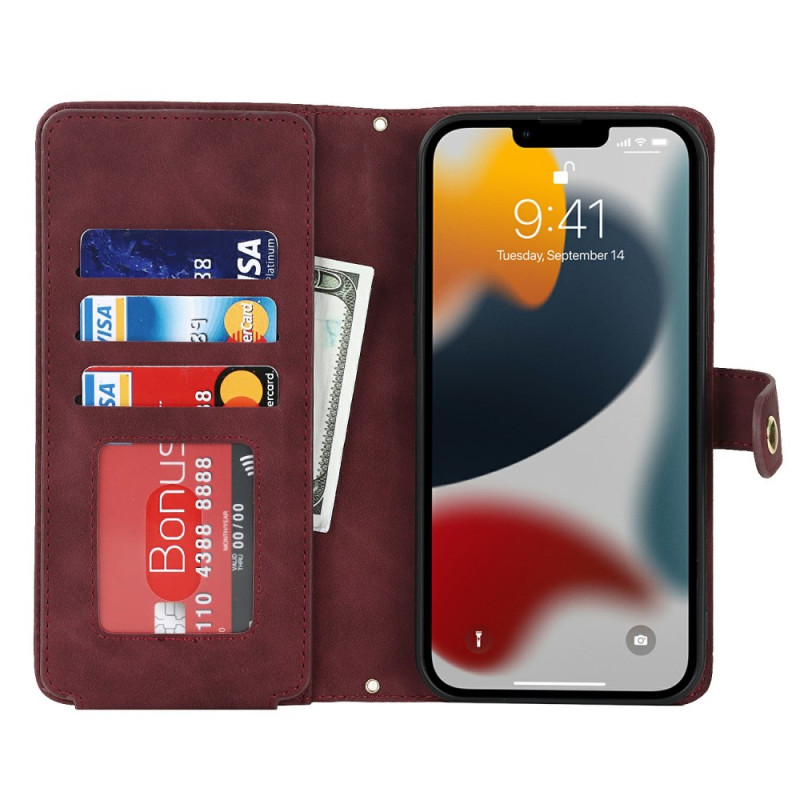 Tutustu tähän monitoimikoteloon vintage PU-nahasta iPhone 13 Pro Maxille ja 12 Pro Maxille. Siinä on useita korttipaikkoja, vetoketjullinen tasku ja kaksi irrotettavaa olkahihnaa, ja siinä yhdistyvät tyylikkyys ja käytännöllisyys jokapäiväiseen käyttöön.