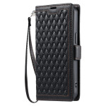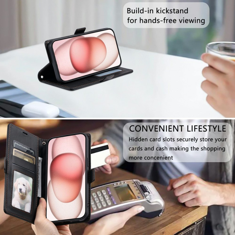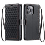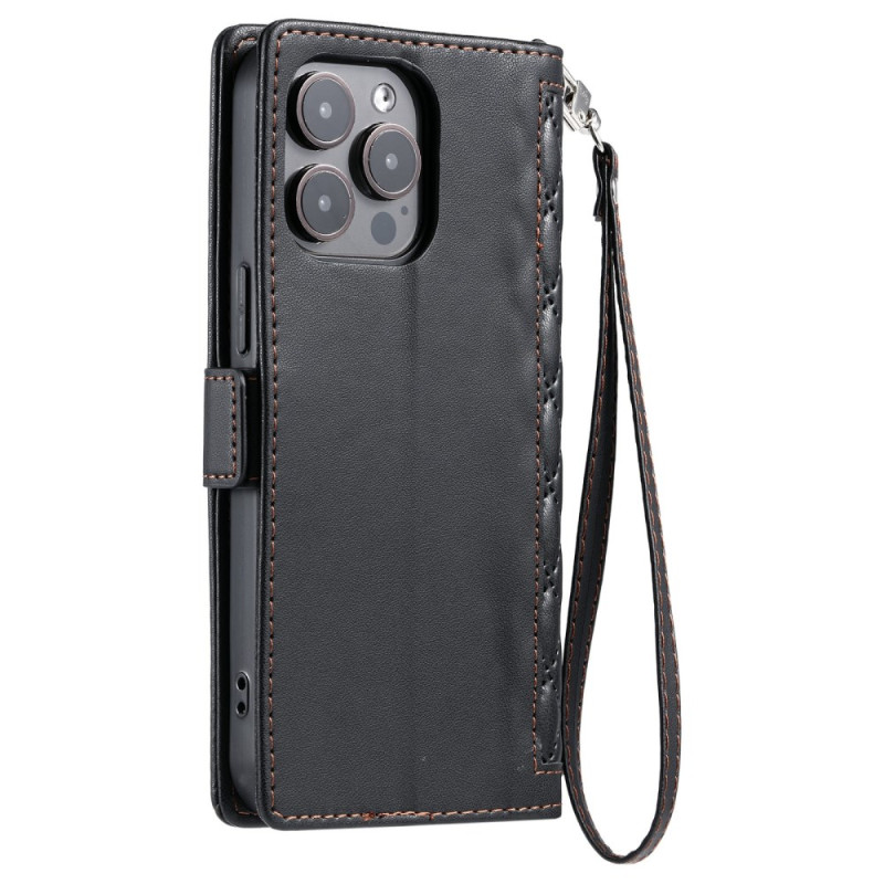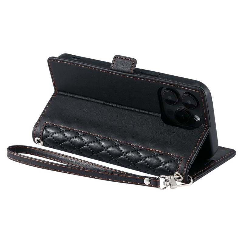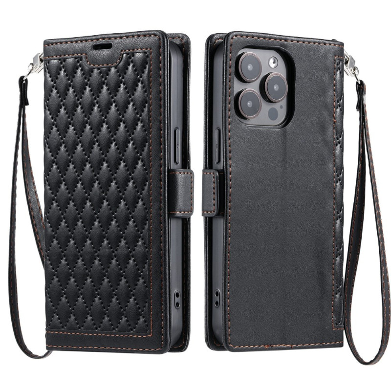 Tyylikäs lompakkokotelo iPhone 13 Pro Maxille hienostuneella timanttikuviolla. 3 korttipaikkaa, 1 käteistasku ja käytännöllinen käsihihna. Muuntuu hands-free pidikkeeksi, josta voit katsella sisältöäsi mukavasti.
