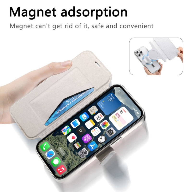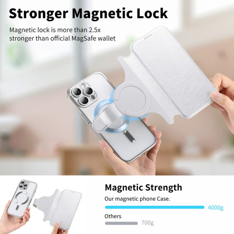 Suojaa iPhone 13 Pro Max -puhelimesi tyylikkäästi tällä MagSafe-yhteensopivalla korkealaatuisella PU-nahkakotelolla. Siinä on säädettävä jalusta, integroidut korttipidikkeet ja RFID-tekniikka, ja siinä yhdistyvät tyyli ja toiminnallisuus täydellistä suojaa varten.