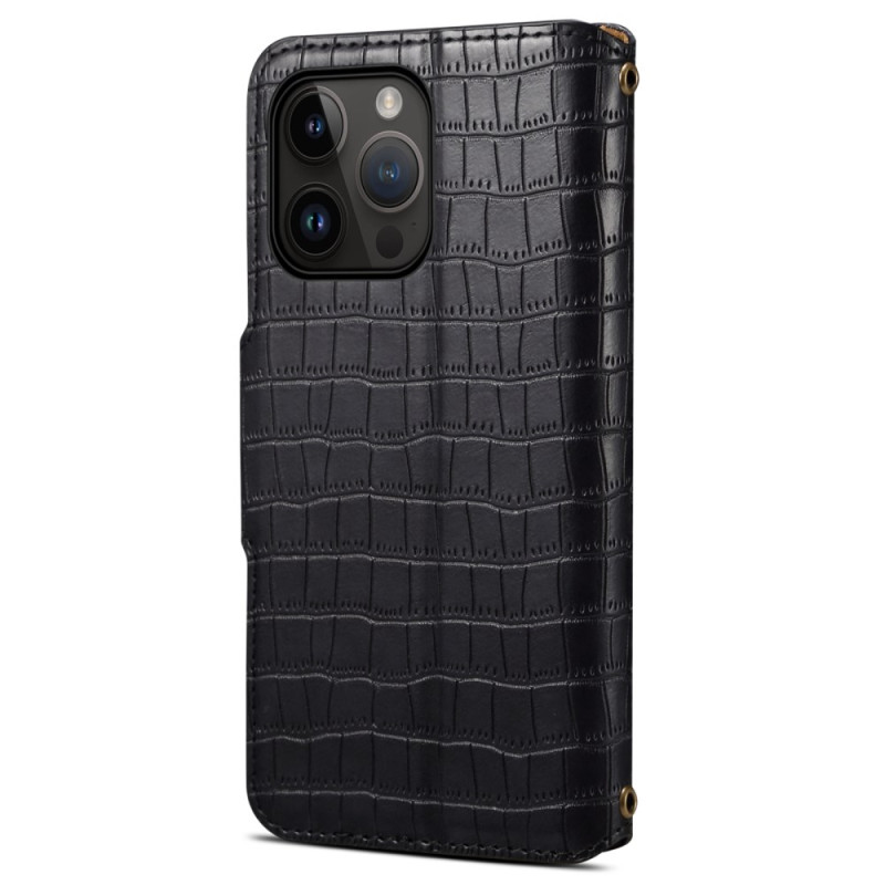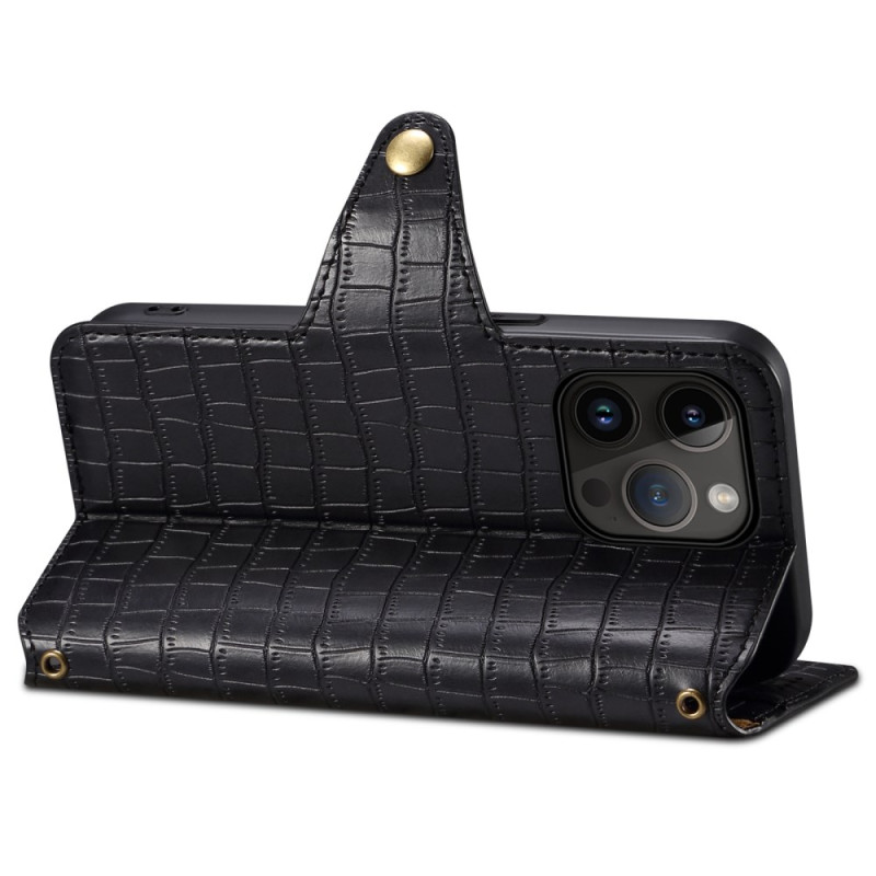 Suojaa iPhone 13 Pro Max -puhelimesi tyylikkäästi tällä krokotiilipintaisella PU-nahkalompakkokotelolla. Siinä on kokoontaitettava jalusta, korttipaikkoja ja turvallinen magneettisuljenta, ja siinä yhdistyvät tyyli ja toiminnallisuus.
