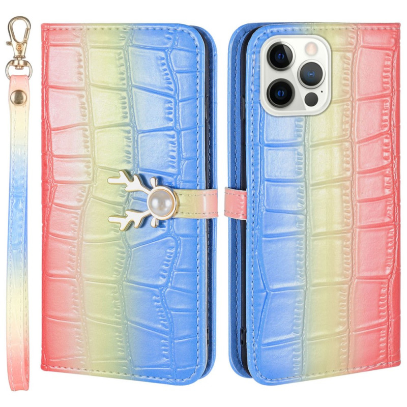 Suojaa iPhone 13 Pro Max -puhelimesi tyylikkäästi tällä ensiluokkaisella nahkakotelolla. Siinä on hienostunut gradienttinen krokotiilitekstiili, ja siinä yhdistyvät tyyli ja toiminnallisuus korttipaikoilla, säädettävällä pidikkeellä ja käytännöllisellä käsihihnalla.