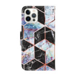 Suojaa iPhone 13 Pro Max -puhelimesi tyylikkäästi tällä monikäyttöisellä lompakkokotelolla, jossa on hienostunut musta geometrinen muotoilu. Kotelossa on integroidut korttipaikat ja käytännöllinen käsihihna, ja se toimii myös jalustana handsfree-käyttöä varten.
