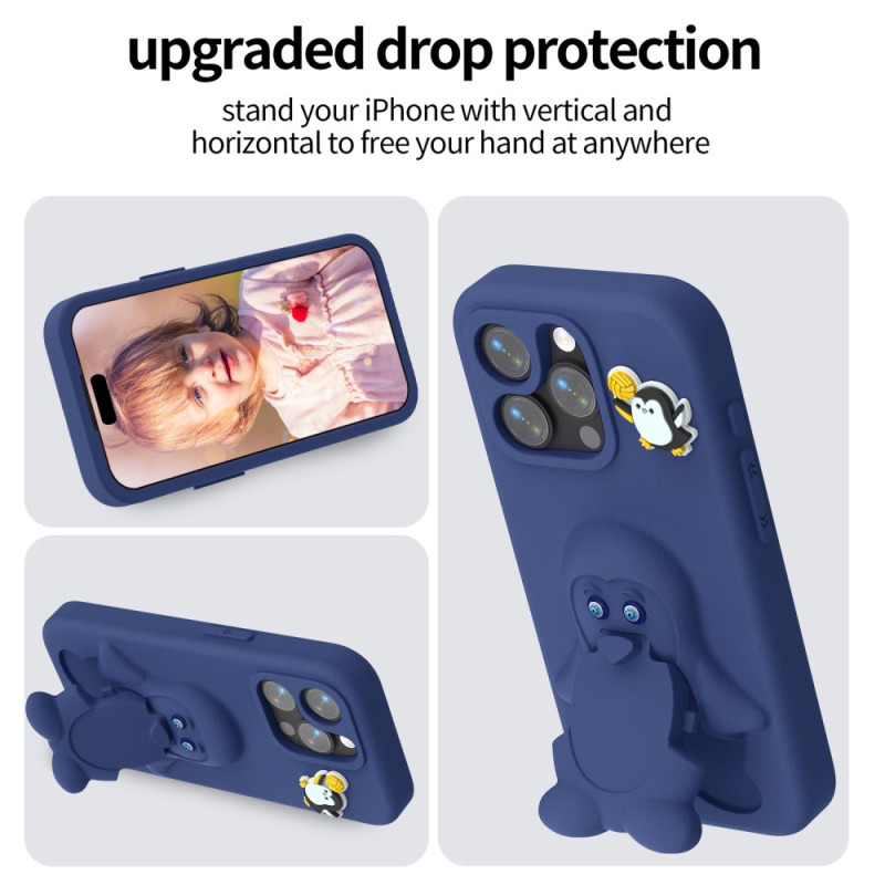, jossa on pingviinikuvio 3D-reliefinä. Ympäristöystävällisestä, iskunkestävästä EVA:sta valmistettu suojakotelo tarjoaa optimaalisen suojan sekä integroidun, säädettävän tuen videoille ja selaamiselle.