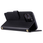 Étui portefeuille élégant en cuir avec motif matelassé pour iPhone 13 Pro. Comprend une bandoulière ajustable, une dragonne, 3 emplacements pour cartes et une poche pour pièces. Fonction support intégrée pour un visionnage mains libres...