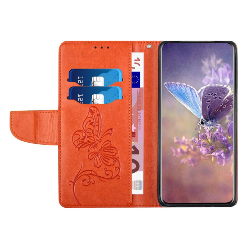 Tyylikäs lompakkokotelo, jossa on kaiverrettu perhonen ja kukka-aihe. Kaksinkertainen suoja magneettisella läppämallilla. Sisältää 2 korttipaikkaa, 1 käteistaskun, integroidun pidikkeen ja käytännöllisen käsihihnan turvallista kuljetusta varten.
