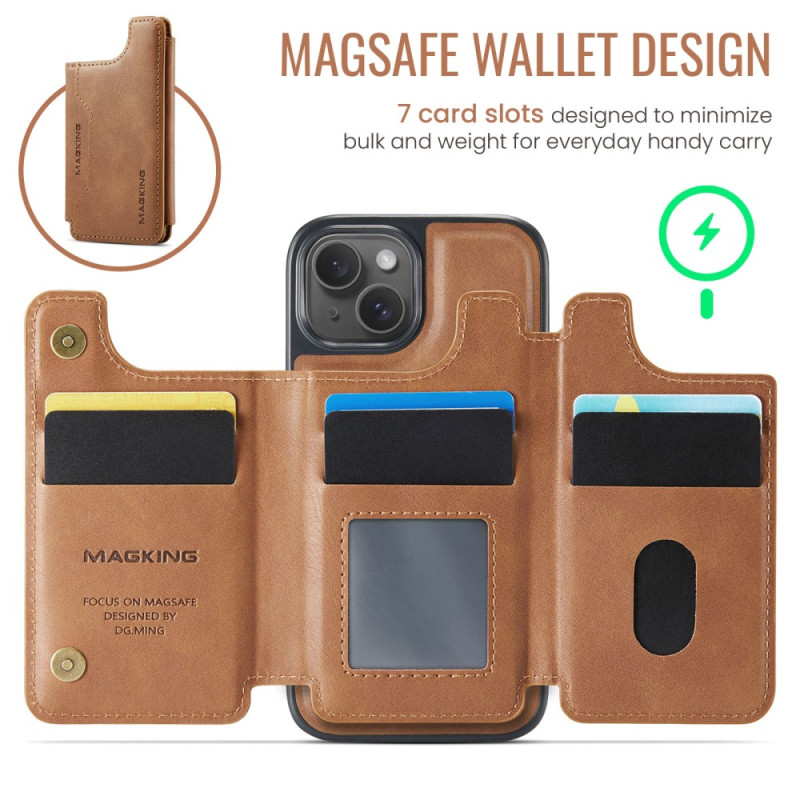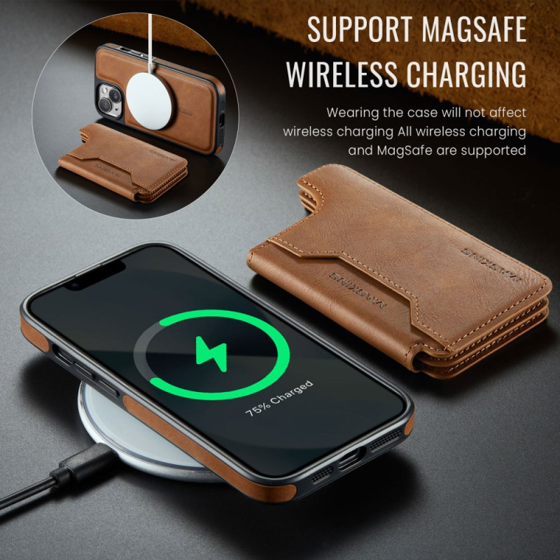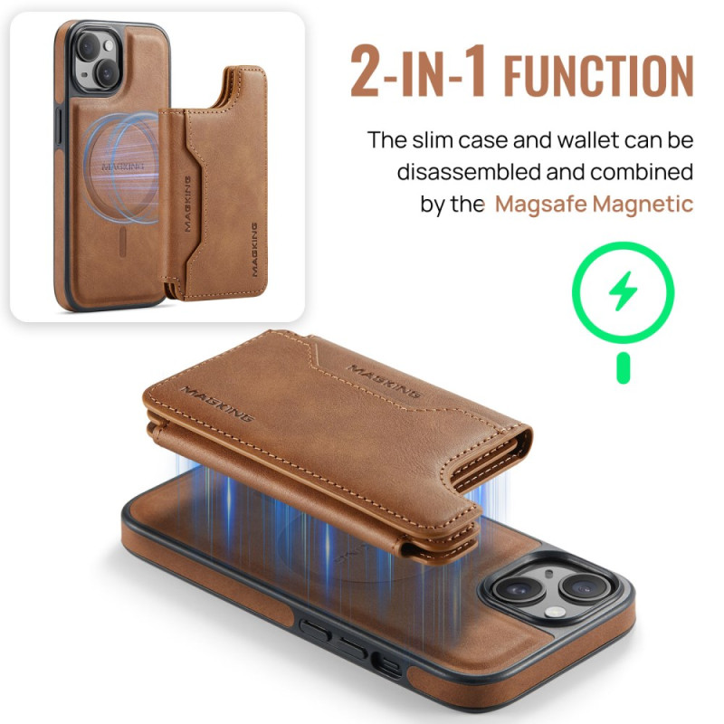 Tutustu MAGKING K3 -sarjan koteloon iPhone 13:lle, jossa yhdistyvät kestävyys ja toiminnallisuus. Se on valmistettu PC:stä, TPU:sta ja PU:sta ja tarjoaa erinomaisen iskunvaimennuksen. Sen säädettävä tuki, MagSafe-yhteensopiva magneettimuotoilu ja lompakkotoiminto tekevät siitä monipuolisen lisävarusteen. Hyödynnä RFID-suojausta ja runsasta säilytystilaa korteillesi ja välttämättömille tavaroille.