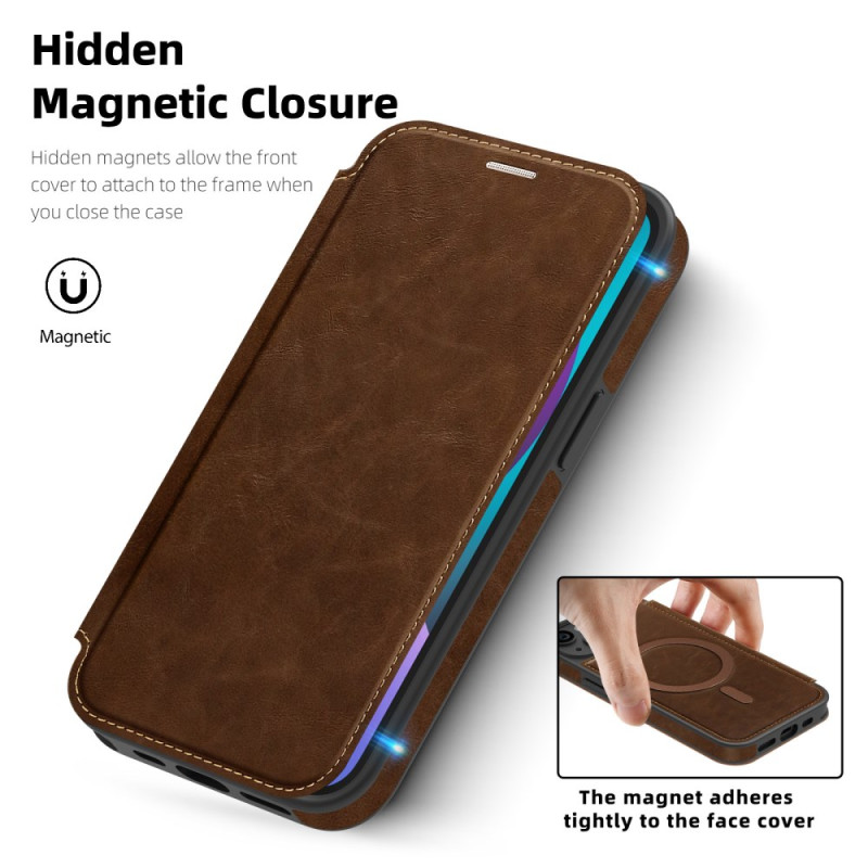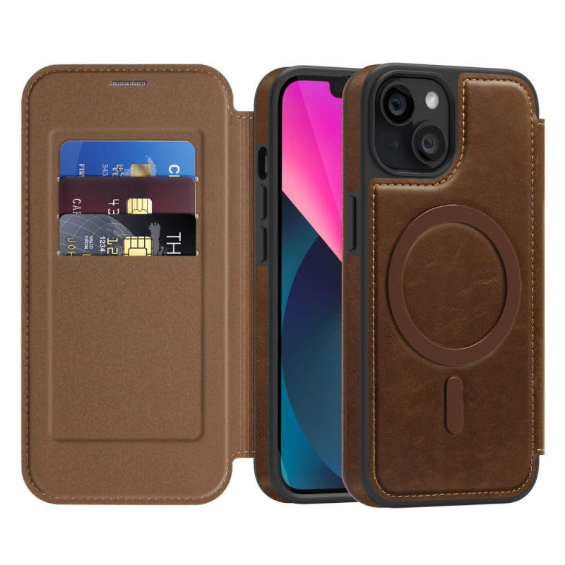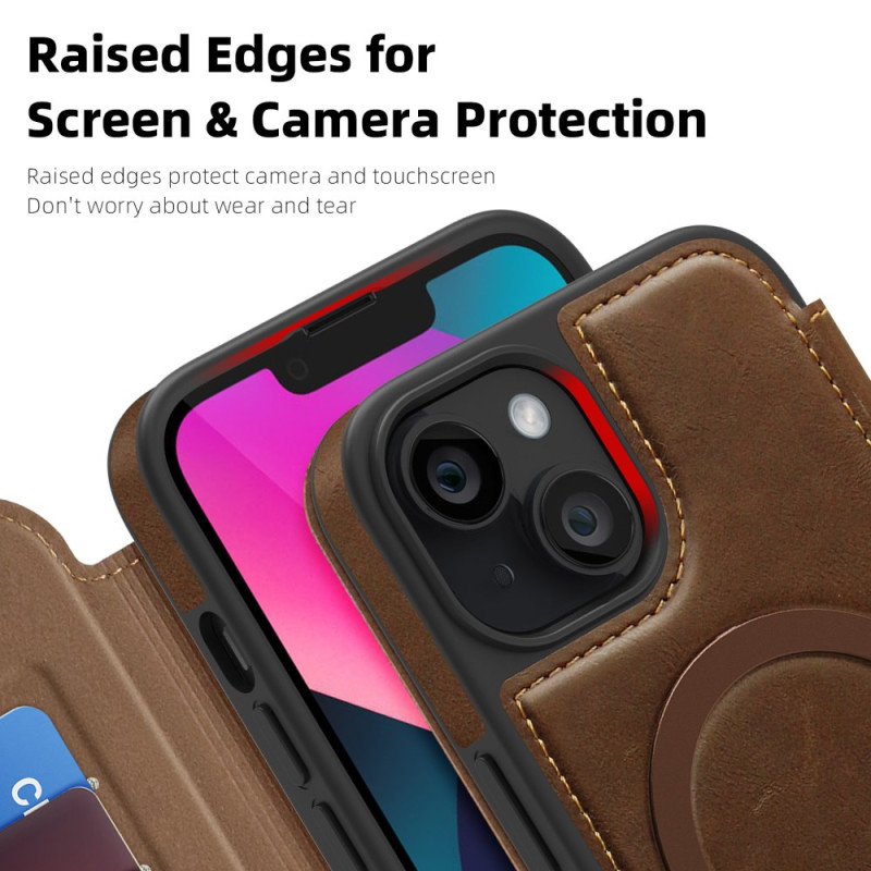 Tutustu MagSafe-yhteensopivaan iPhone 13 -koteloon, jossa on integroitu korttipidike ja RFID-sulkutekniikka. Laadukkaasta TPU:sta ja PU-nahasta valmistettu suojakotelo tarjoaa kestävyyttä ja tyylikästä suojaa laitteellesi. Sen korttipaikat ja korotetut reunukset tekevät siitä käytännöllisen ja turvallisen jokapäiväiseen käyttöön.