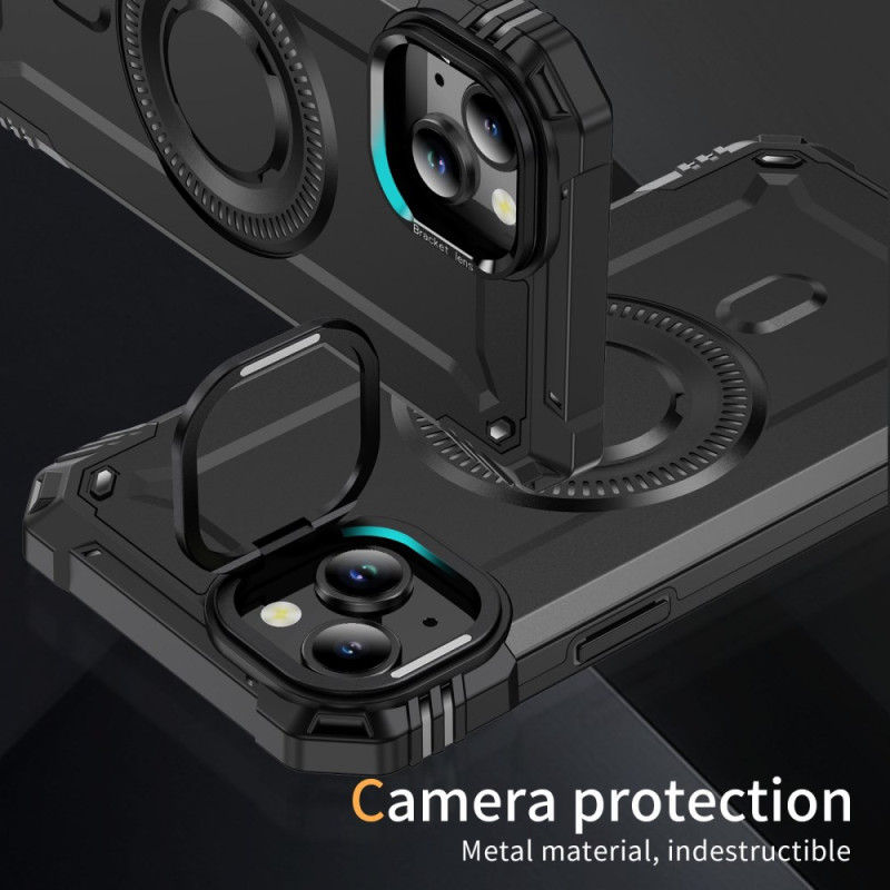 Tutustu innovatiiviseen koteloon iPhone 13:lle, joka on suunniteltu optimaaliseen suojaukseen ja parannettuun toiminnallisuuteen. Kamerakehykseen integroidun säädettävän metallikannattimen ansiosta se tarjoaa kätevän handsfree-katselun. Tehokkaiden N52-magneettien ansiosta se tehostaa langatonta latausta ja tukee magneettisia autokiinnikkeitä.