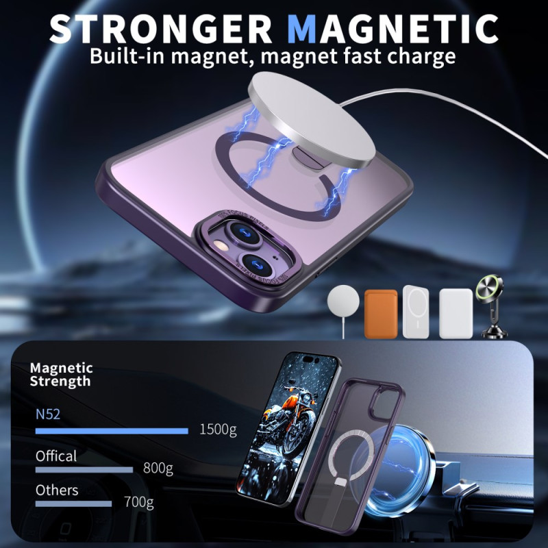 Tutustu innovatiiviseen koteloon iPhone 14 Plus -puhelimelle, joka on suunniteltu tarjoamaan optimaalista suojaa ja täydellistä yhteensopivuutta MagSafe-järjestelmän kanssa. Tässä kotelossa on monipuolinen integroitu pidike, ja siinä yhdistyvät toiminnallisuus ja tyyli. Nauti voimakkaasta magneettivoimasta, parannetusta suojasta ja tarkasta istuvuudesta.