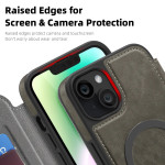 Tämä MagSafe-yhteensopiva puhelinsuojus tarjoaa kestävän ja tyylikkään suojan iPhone 14 Plus -puhelimelle. Laadukkaasta TPU:sta ja PU-nahasta valmistetussa suojakuoressa yhdistyvät tyyli ja toiminnallisuus, ja siinä on integroidut korttipaikat ja RFID-sulkutekniikka, joka pitää henkilökohtaiset tietosi turvassa.