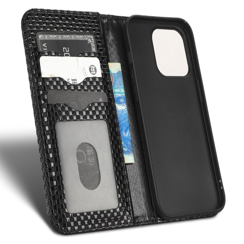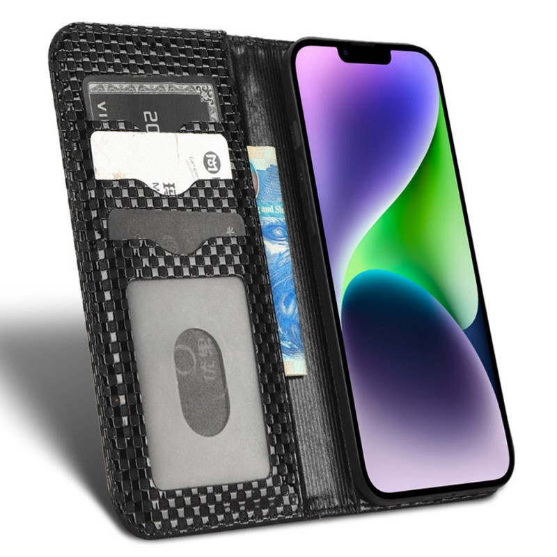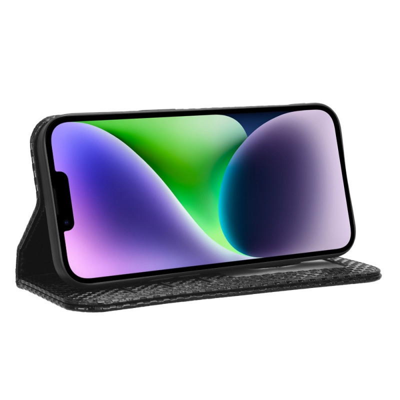Découvrez notre housse portefeuille magnétique pour iPhone 14 Plus. Alliant protection antichoc et fonctionnalité, elle offre un design élégant avec texture quadrillée. Profitez de compartiments pour cartes et billets, ainsi qu'un support intégré pour une visualisation confortable.