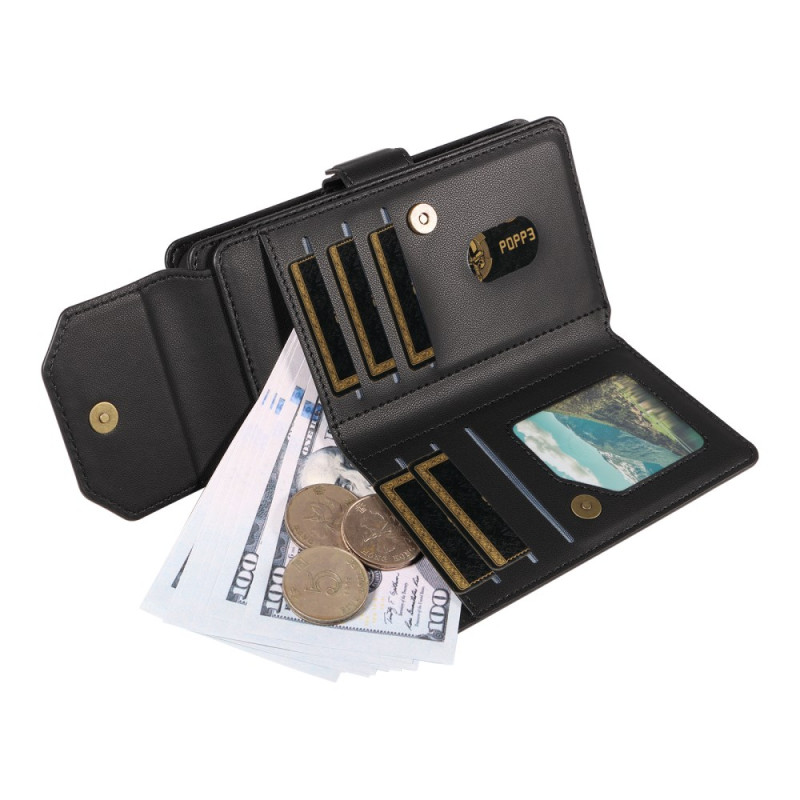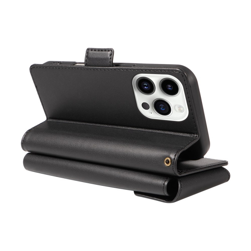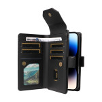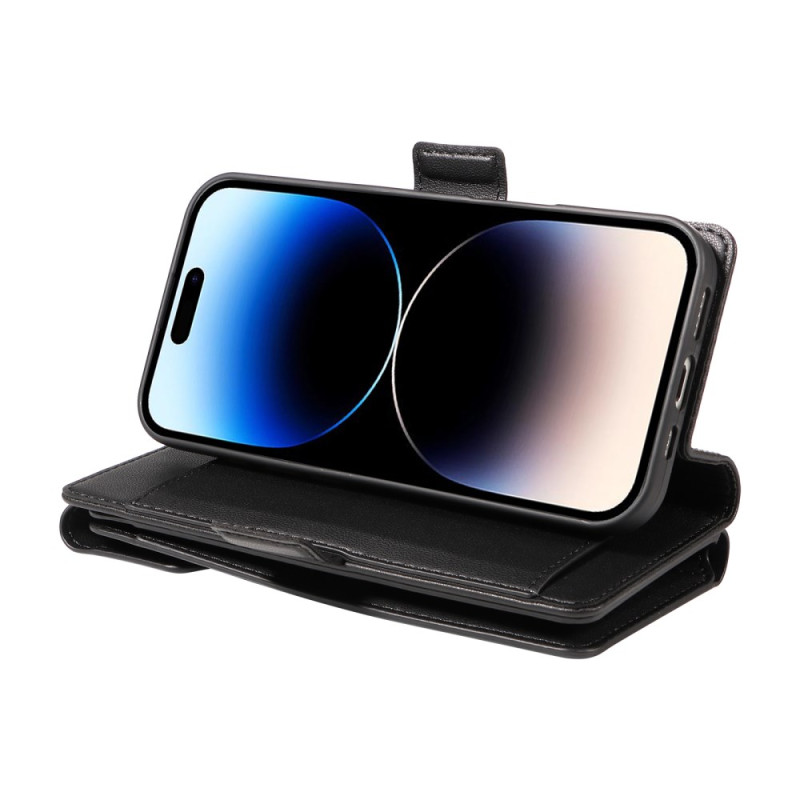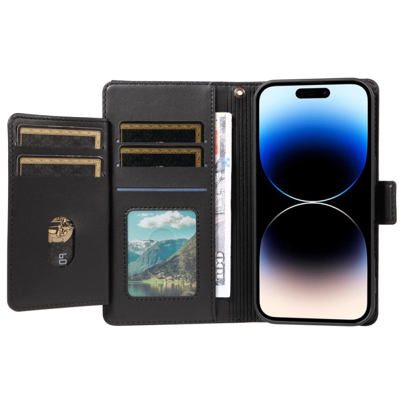 Monikäyttöinen PU-nahkamainen lompakkokotelo iPhone 14 Pro Maxille. Useita korttipaikkoja, muistiinpanolokeroita, integroitu jalusta-toiminto ja irrotettava käsihihna. Turvallinen magneettisuljenta ja tarkat leikkaukset helppoa käyttöä varten.
