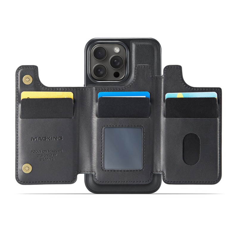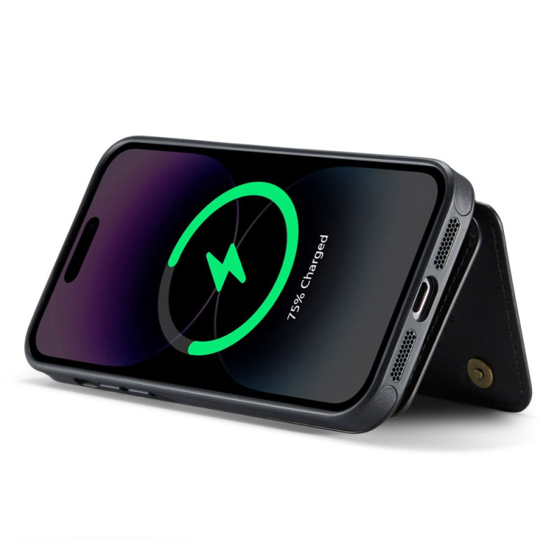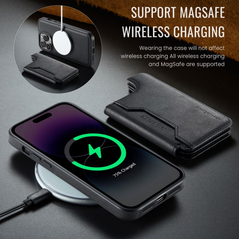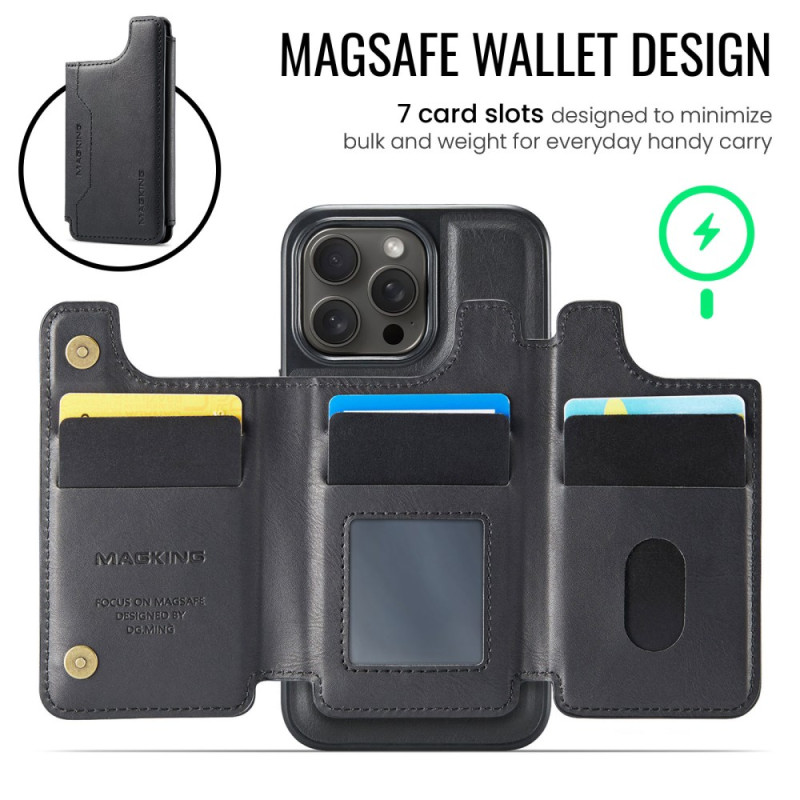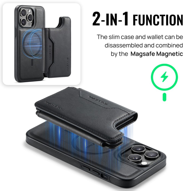 Tutustu MAGKING-koteloon iPhone 14 Pro Maxille, jossa yhdistyvät kestävyys ja toiminnallisuus. PC:stä, TPU:sta ja PU:sta valmistettu suojakotelo tarjoaa erinomaisen iskunvaimennuksen ja pitkäaikaisen kestävyyden. Sen säädettävän jalustan avulla on helppo vaihtaa lukemisen ja elokuvien katselun välillä, sillä sen enimmäiskulma on 135°. Integroitu magneettinen muotoilu takaa yhteensopivuuden langattoman MagSafe-latauksen kanssa. 2-in-1-muotoilun ansiosta ohut kuori ja lompakko on helppo irrottaa ja yhdistää MagSafe-yhteensopivan magneettiliitännän ansiosta. Lompakossa on RFID-sulkumateriaali, joka suojaa yksityisiä tietojasi luvattomalta skannaukselta. Lompakossa on 7 korttipaikkaa ja sivutasku, joten se tarjoaa monipuolisen säilytyspaikan välttämättömille tavaroillesi.