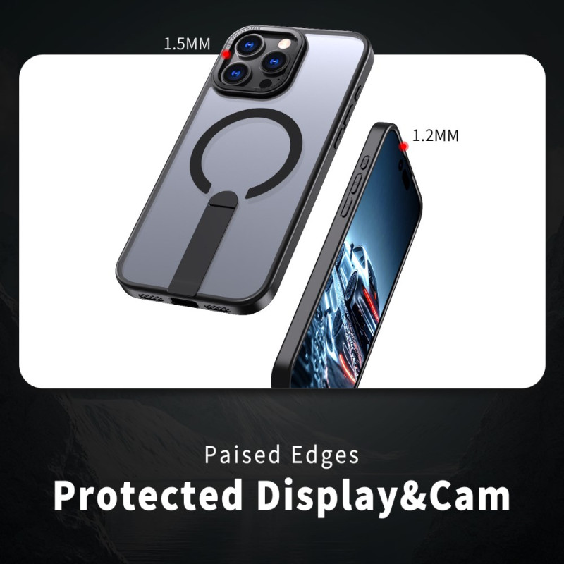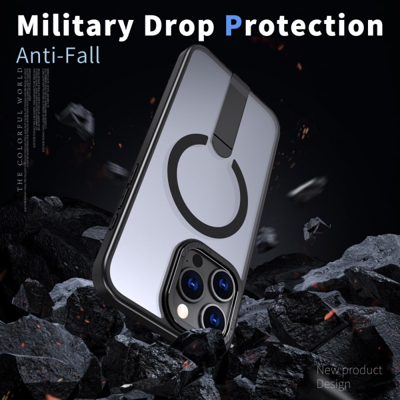 Tutustu innovatiiviseen koteloon iPhone 14 Pro Maxille, joka on MagSafe-yhteensopiva ja jossa on integroitu jalusta. Joustavaa TPU:ta ja kirkasta akryylia yhdistävä suojakotelo tarjoaa optimaalisen suojan ja korotetut reunukset