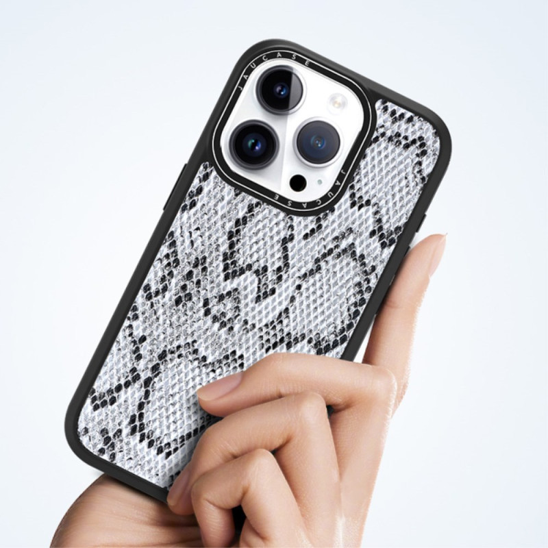 Suojaa iPhone 14 Pro Max -puhelimesi tyylikkäästi tällä ensiluokkaisella JAUCASE-kotelolla. MagSafe-yhteensopiva, integroidulla magneettirenkaalla varustettu suojakuori yhdistää tyylikkyyden ja optimaalisen suojan. Sen kuvioitu muotoilu tarjoaa turvallisen ja mukavan otteen.