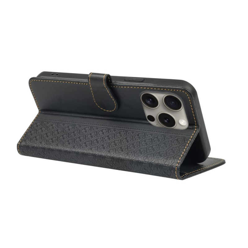 Tutustu tyylikkääseen nahkakoteloon iPhone 14 Pro:lle, jossa yhdistyvät tyyli ja toiminnallisuus. Nelilehtisen apilan muotoilun ja käytännöllisen magneettikiinnityksen ansiosta tämä suojakuori tarjoaa täydellisen suojan ja säilytyksen korteillesi. Voit myös hyödyntää jalusta-toimintoa mukavaa katselua varten.