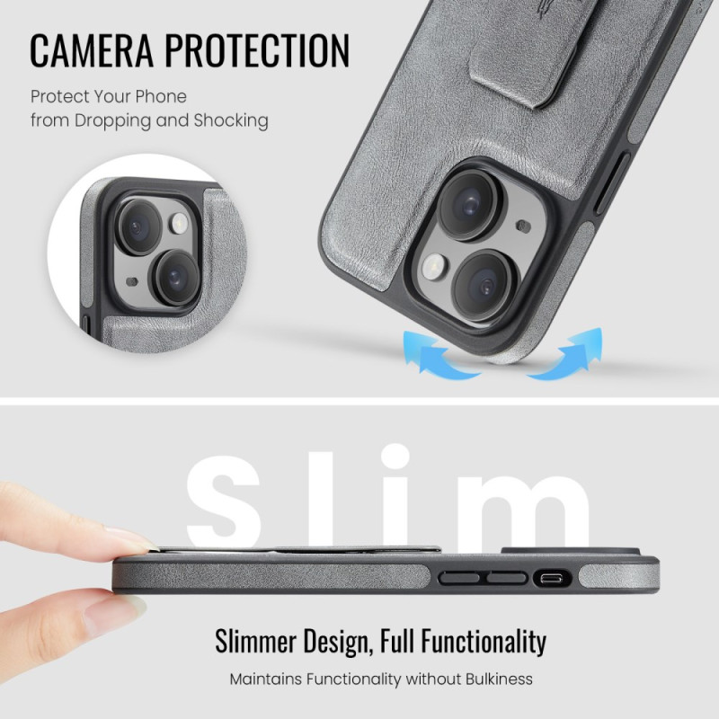 Tutustu tyylikkääseen koteloon iPhone 14:lle, jossa yhdistyvät suojaus ja toiminnallisuus. Suojakuori on valmistettu naudan nahasta ja joustavasta TPU:sta, ja se tarjoaa vankan suojan tyylistä tinkimättä. Integroitu jalusta tarjoaa kätevän handsfree-katselun, ihanteellinen videoita ja puheluita varten.