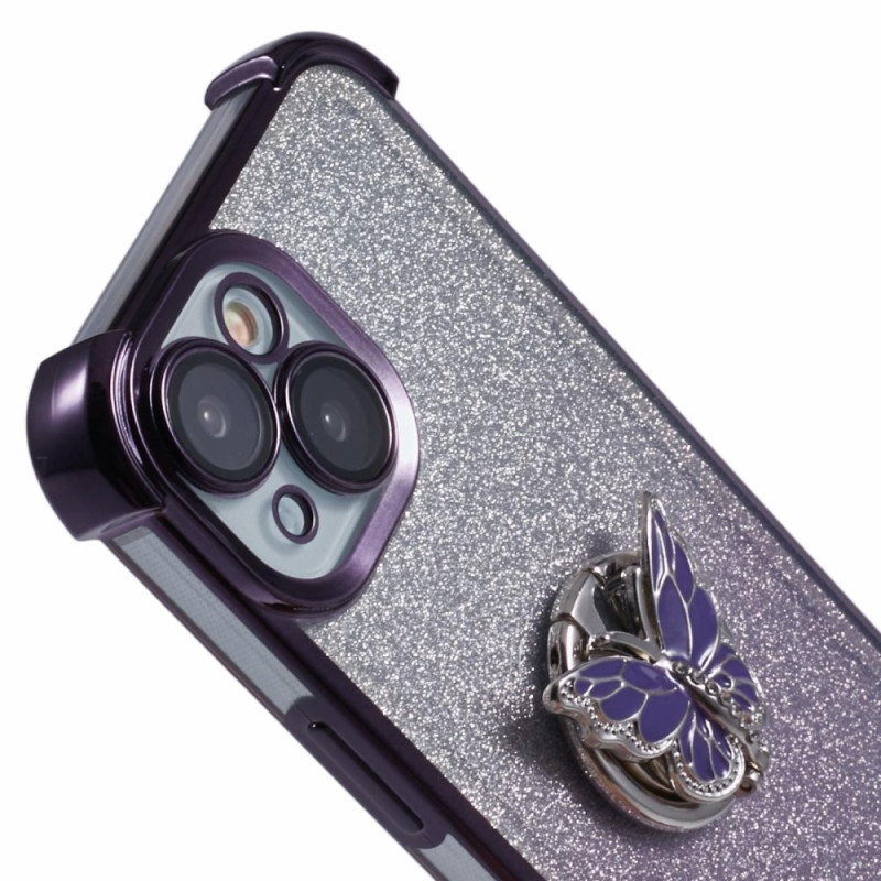 Tutustu tyylikkääseen koteloon iPhone 14:lle, jossa on integroitu perhostuki. Kestävästä 1,8 mm:n TPU-muovista valmistettu suojakotelo tarjoaa paremman suojan naarmuja ja kolhuja vastaan. Sen kimalteleva muotoilu ja galvanoitu kehys tuovat laitteeseesi ripauksen tyyliä. Nauti handsfree-katselusta ainutlaatuisen perhosen muotoisen jalustan ansiosta.