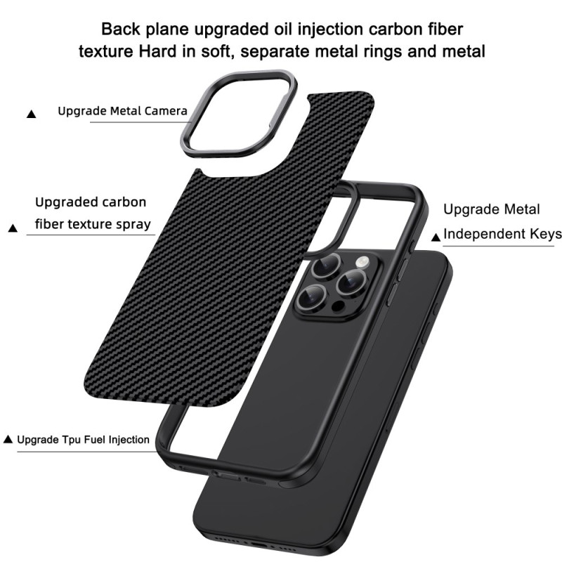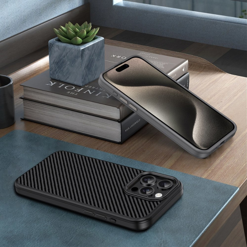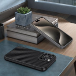 Tutustu IPAKY-koteloon iPhone 15 Plus -puhelimelle, jossa yhdistyvät tyyli ja suojaus. Laadukkaasta TPU:sta valmistettu, tyylikkäällä hiilikuitukuvioinnilla varustettu suojakotelo tarjoaa poikkeuksellisen kestävyyden ja paremman pidon. Sen metallikehys linssin ympärillä ja itsenäiset metallipainikkeet tarjoavat lisäsuojaa ja tarkan tuntuman.