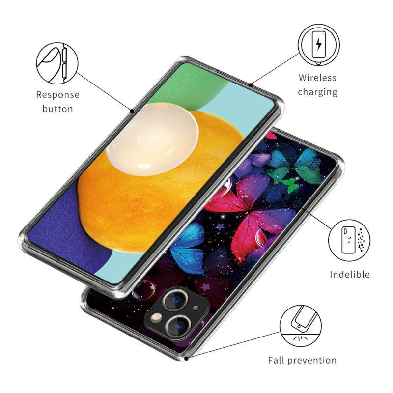 Suojaa iPhone 15 Plus -puhelimesi tyylikkäästi värikkäillä perhosilla varustetulla iskunkestävällä kotelolla. Tyylin ja suojan yhdistävä joustava TPU-suojakuori vaimentaa iskuja, kestää naarmuja ja tarjoaa mukavan otteen. Sen erittäin ohut muotoilu sopii täydellisesti taskuusi, ja sen herkät painikkeet takaavat reagoivan käytön.
