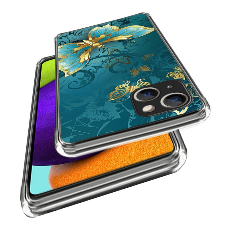 Suojaa iPhone 15 Plus -puhelimesi tyylikkäästi iskunkestävällä kotelollamme, jossa on kultainen perhoskuvio. Joustavasta TPU-muovista valmistettu suojakuori suojaa optimaalisesti iskuilta ja naarmuilta ja on samalla erittäin ohut ja tyylikäs. Sen ainutlaatuinen muotoilu ja herkät painikkeet tekevät siitä käytännöllisen jokapäiväiseen käyttöön.