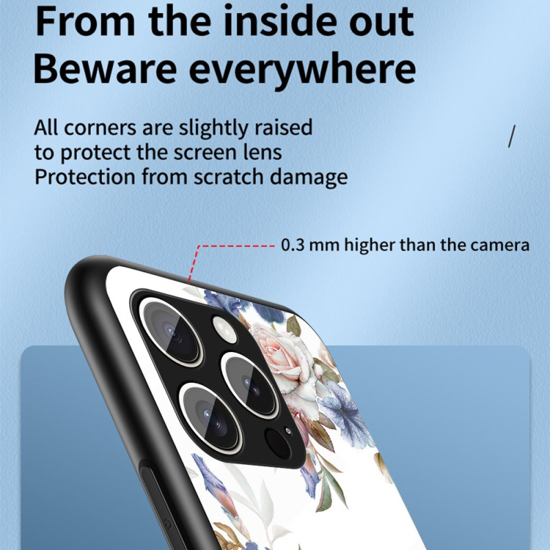 Tutustu tyylikkääseen suojakoteloon iPhone 15 Pro Max -puhelimelle. Joustava TPU-kehys ja kestävä panssarilasi sisältävä takapuoli yhdistyvät, ja tämä suojakuori tarjoaa optimaalisen suojan iskuja ja naarmuja vastaan. Sen erittäin ohut ja kevyt muotoilu mukautuu täydellisesti puhelimesi ääriviivoihin säilyttäen samalla sen hienostuneen estetiikan.