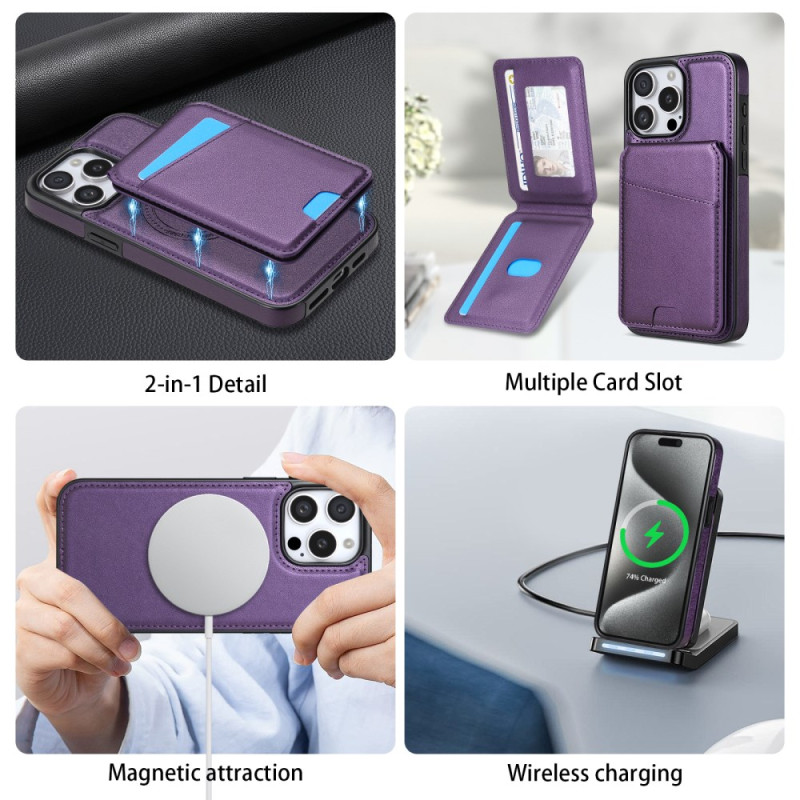 Tutustu innovatiiviseen, MagSafe-yhteensopivaan iPhone 15 Pro -koteloon, jossa on irrotettava korttipidike ja integroitu jalusta. Tässä nahkakotelossa yhdistyvät kestävä suojaus ja käytännölliset toiminnot, ja se tarjoaa säilytystilan tärkeille korteillesi ja monipuolisen katselukokemuksen.