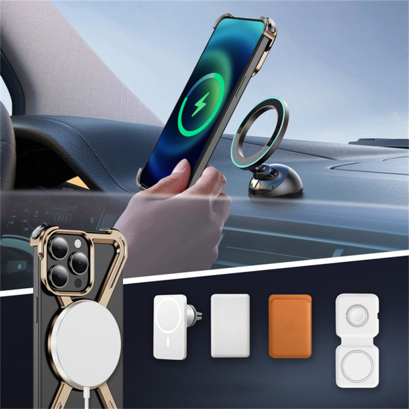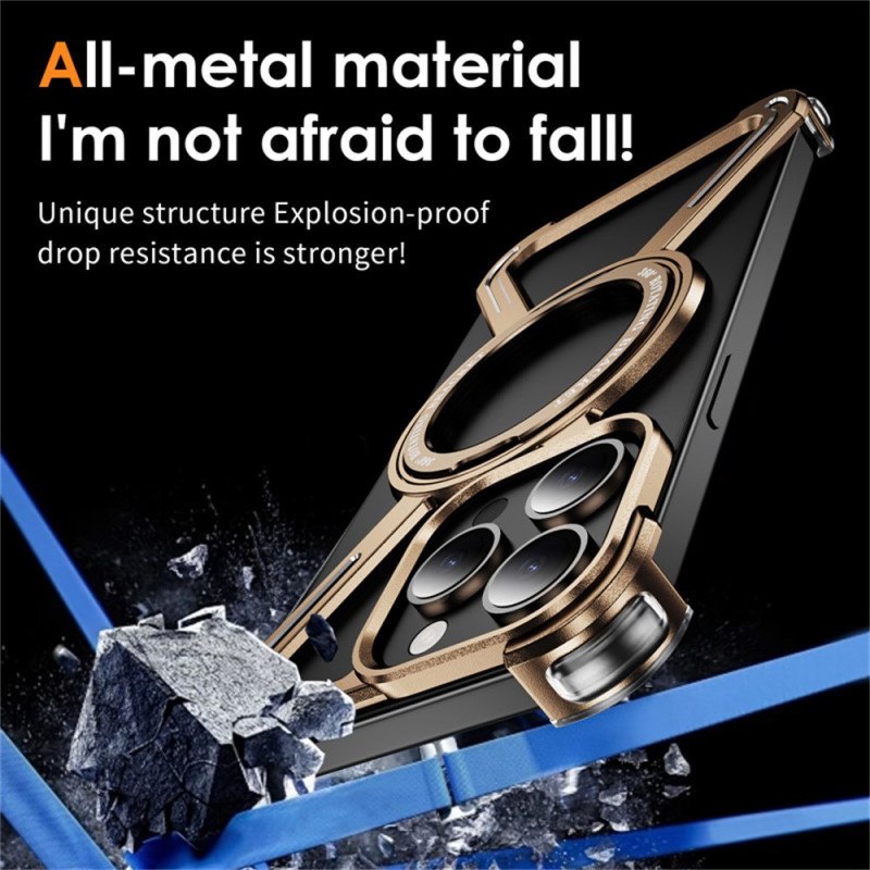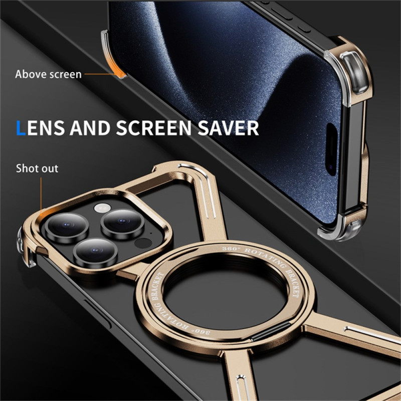 Tutustu innovatiiviseen koteloon iPhone 15 Pro:lle. Kestävästä metallista valmistettu suojakotelo suojaa erinomaisesti iskuilta ja putoamisilta. Sen 360° kääntyvä pidike tekee hands-free katselusta helppoa. Tämä suojakuori on yhteensopiva magneettikiinnikkeiden ja MagSafe-latauksen kanssa, ja siinä yhdistyvät toiminnallisuus ja tyyli laitteellesi.