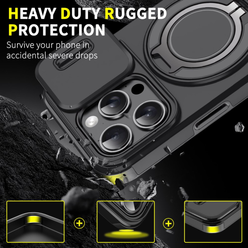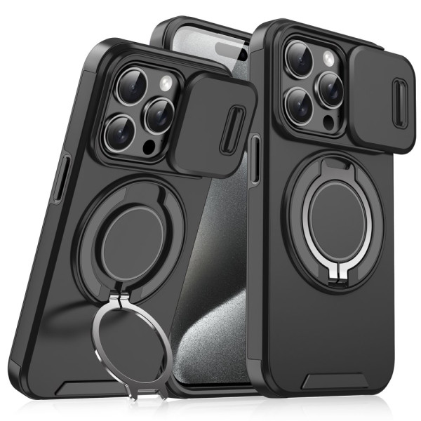 Tutustu innovatiiviseen koteloon iPhone 15 Pro:lle. Siinä on liukuva linssisuojus, pyörivä pidike ja magneettinen yhteensopivuus, ja se tarjoaa optimaalisen suojan ja parannetun toiminnallisuuden. TPU:sta ja PC:stä valmistetussa kotelossa yhdistyvät kestävyys ja tyyli, mikä takaa poikkeuksellisen käyttökokemuksen.