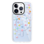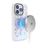 Tutustu tyylikkääseen koteloon iPhone 15 Pro -puhelimelle, jossa yhdistyvät suojaus ja tyyli. Se on valmistettu PC:stä ja TPU:sta, on poikkeuksellisen kestävä ja kestää pudotuksia jopa 3 metrin korkeudesta. MagSafe-yhteensopiva kätevää langatonta latausta varten. Ainutlaatuinen kukka- ja strassikivikuviointi tuo laitteeseesi ripauksen glamouria.