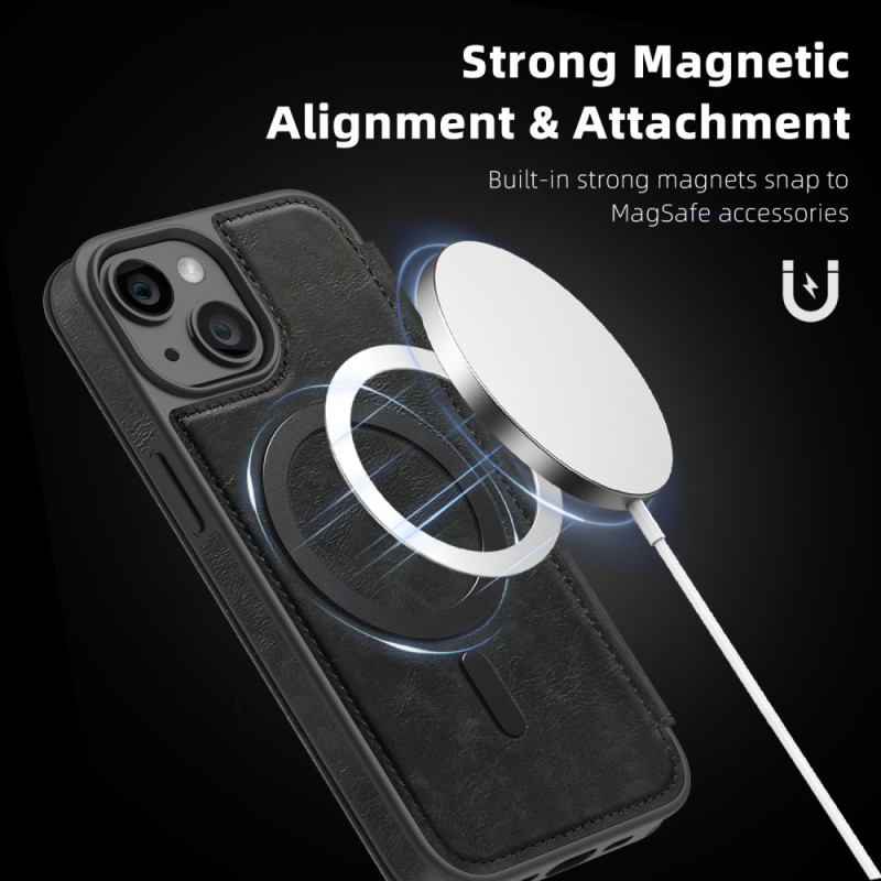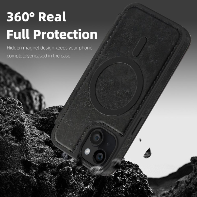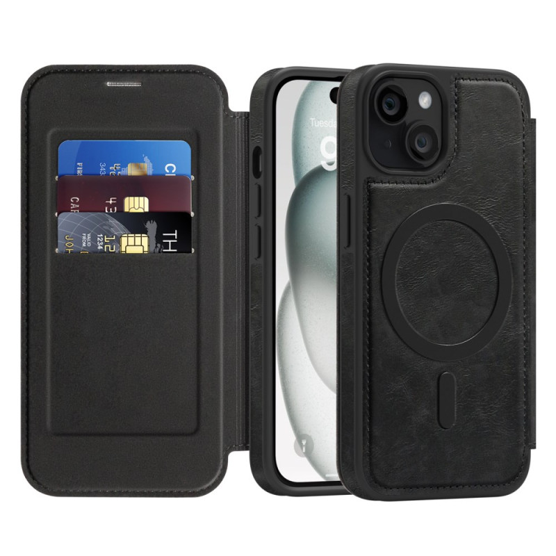 Tutustu huippuluokan iPhone 15 -koteloon. MagSafe-yhteensopiva suojakotelo tarjoaa RFID-suojauksen, korttipaikat ja kestävän TPU- ja PU-nahkarakenteen. Korotettujen reunojen ansiosta se suojaa puhelimen näyttöä ja kameraa jokapäiväiseltä kulutukselta.
