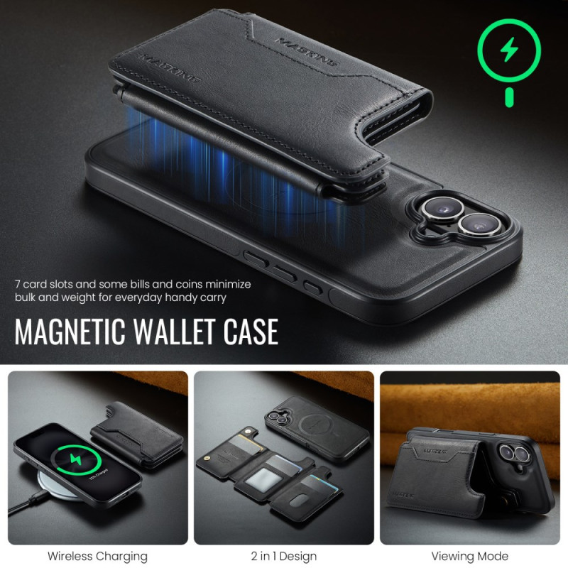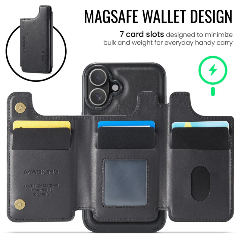 Tutustu MAGKING-koteloon iPhone 16 Plus -puhelimelle, jossa yhdistyvät kestävyys ja toiminnallisuus. Se on valmistettu PC:stä, TPU:sta ja PU:sta ja tarjoaa erinomaisen iskunvaimennuksen. Säädettävä tuki, MagSafe-yhteensopiva magneettirakenne ja irrotettava lompakko, jossa on RFID-suojaus, tekevät siitä monipuolisen ja käytännöllisen lisävarusteen jokapäiväiseen elämääsi.