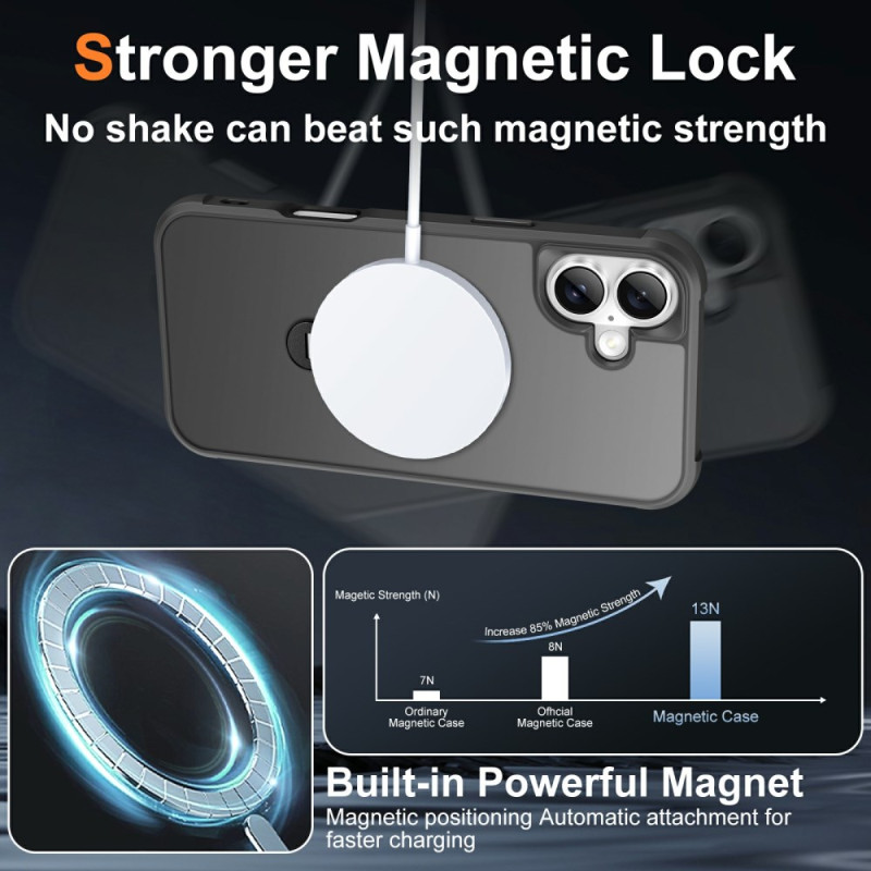 Tutustu premium-suojakoteloon iPhone 16:lle. MagSafe-yhteensopiva suojakotelo tarjoaa erinomaisen suojan iskuja ja putoamisia vastaan. Sen integroitu pyörivä jalusta mahdollistaa handsfree-katselun useista eri kulmista. Näytön ja kameran korotetut reunukset suojaavat laitettasi täydellisesti.