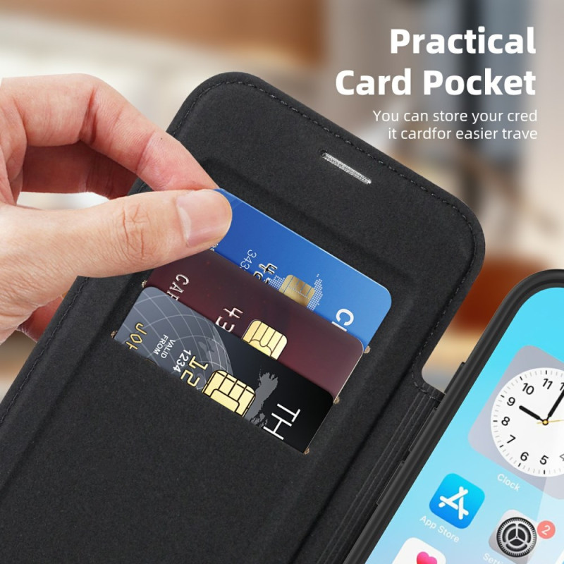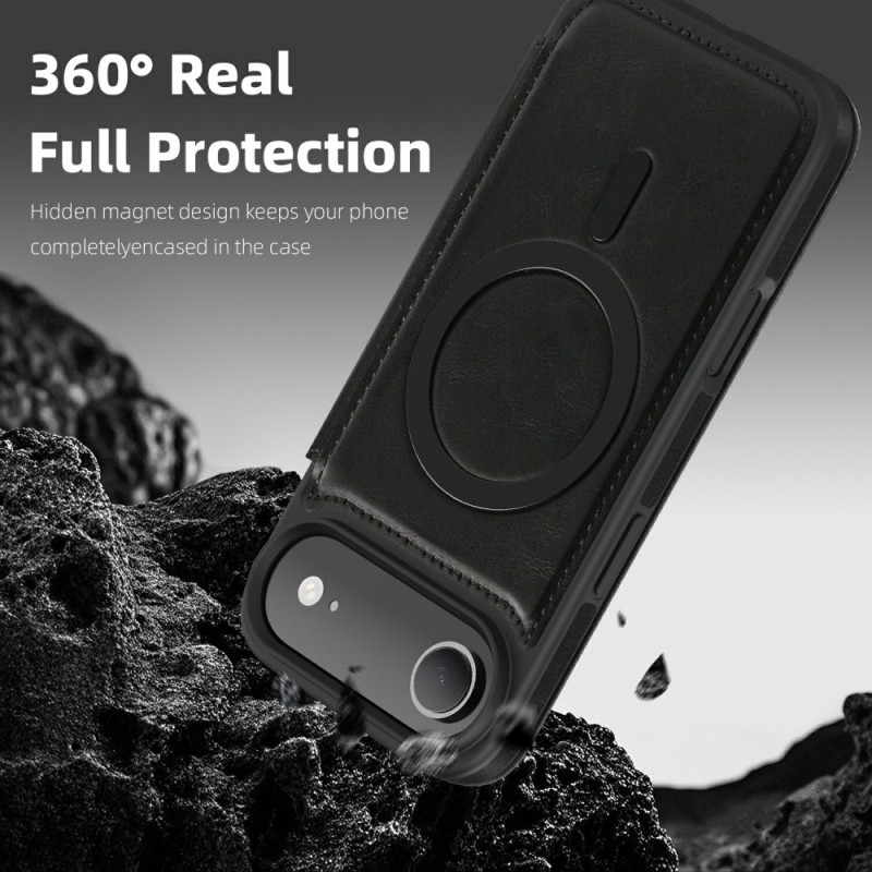 Yhdistä hienostunut tyyli ja kehittynyt turvallisuus tässä ruskeassa PU-nahkaisessa iPhone Air -kotelossa, joka on MagSafe-yhteensopiva. Sen hillitty ja tyylikäs muotoilu sisältää tehokkaat magneetit, jotka mahdollistavat sujuvan ja vakaan langattoman latauksen, mutta säilyttävät samalla älypuhelimesi ohuet linjat. Käytännölliset korttipaikat ja integroitu RFID-teknologia suojaavat henkilökohtaisia tietojasi luvattomalta skannaukselta. Korotetut reunukset suojaavat näyttöä ja kameraa, joten se tarjoaa täydellisen suojan jokapäiväiseen käyttöön.