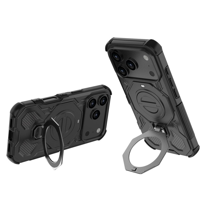 Pyörivällä metallituella ja magneettiyhteensopivuudella varustetussa iPhone 17 Pro Max -kotelossa yhdistyvät monipuolisuus ja kestävyys. Jäykästä PC:stä ja joustavasta TPU:sta valmistettu suojakotelo suojaa luotettavasti iskuilta ja putoamisilta ja on samalla kevyt ja mukava pitää. Sen 360° kääntyvän jalustan ansiosta voit asettaa puhelimen eri kulmiin ja katsella videoita tai soittaa puheluita mukavasti. Integroidun magneettijärjestelmän ansiosta se sopii helposti MagSafe-latureihin ja yhteensopiviin autotelineisiin.
