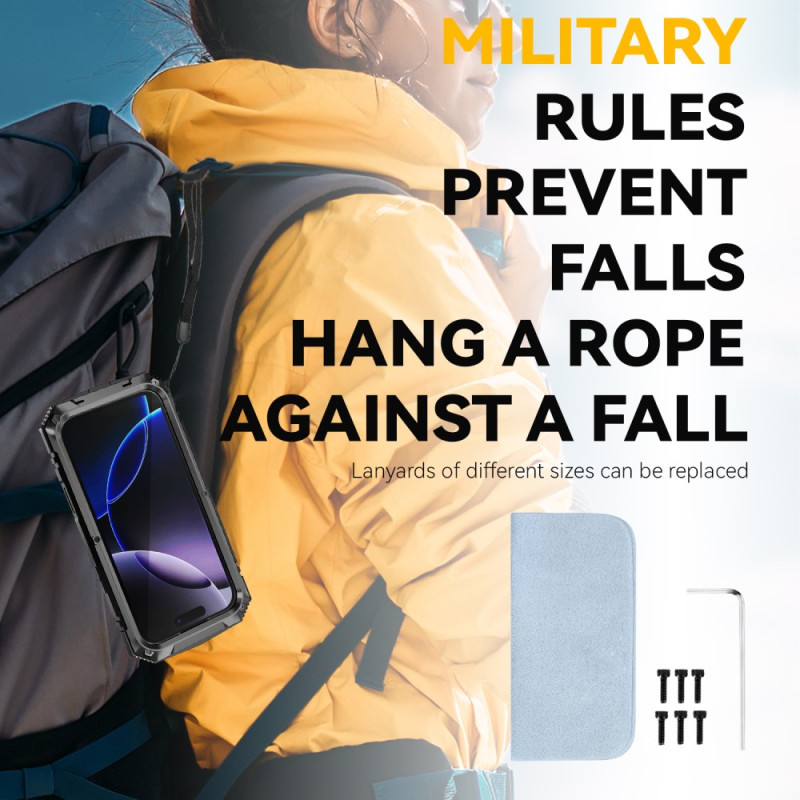 Seikkailu kutsuu. Ota haaste vastaan varmana siitä, että iPhone 17 Pro -puhelimesi on varustettu jokaiseen haasteeseen R-JUST-kotelon avulla. Sen tukevan ripustushihnan avulla voit kiinnittää sen varusteisiisi, jolloin se pysyy turvassa ja saatavilla, olitpa sitten vaelluksella tai kiipeilemässä. Sen monimateriaalinen panssarointi, johon kuuluu metallinen etupaneeli ja panssarilasi oleva näyttö, muodostaa läpäisemättömän suojan putoamisia vastaan. Leirillä integroitu jalusta tarjoaa optimaalisen katselumukavuuden, ja langaton lataus helpottaa lataamista.