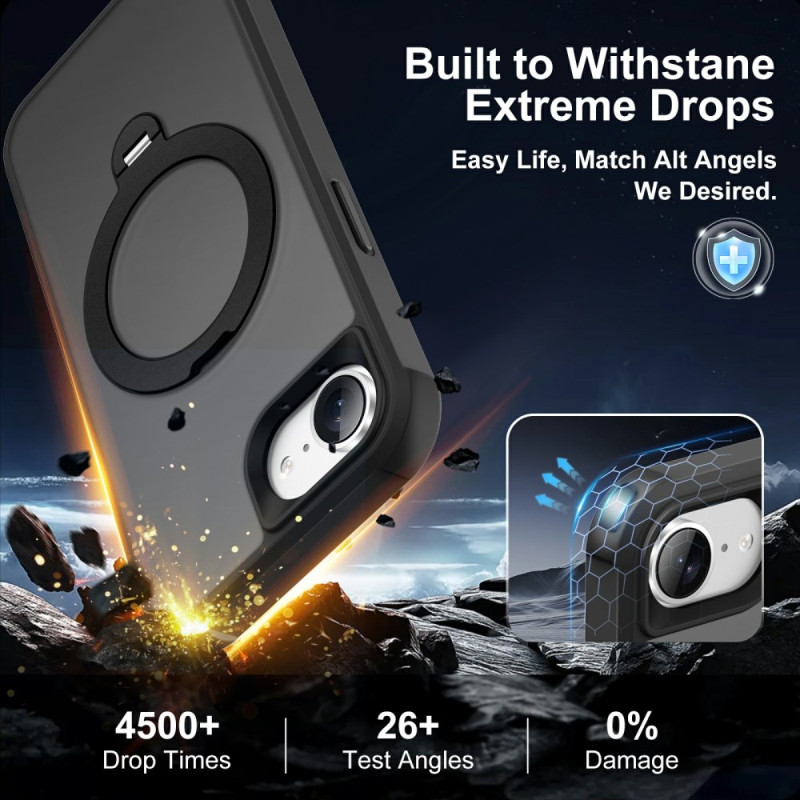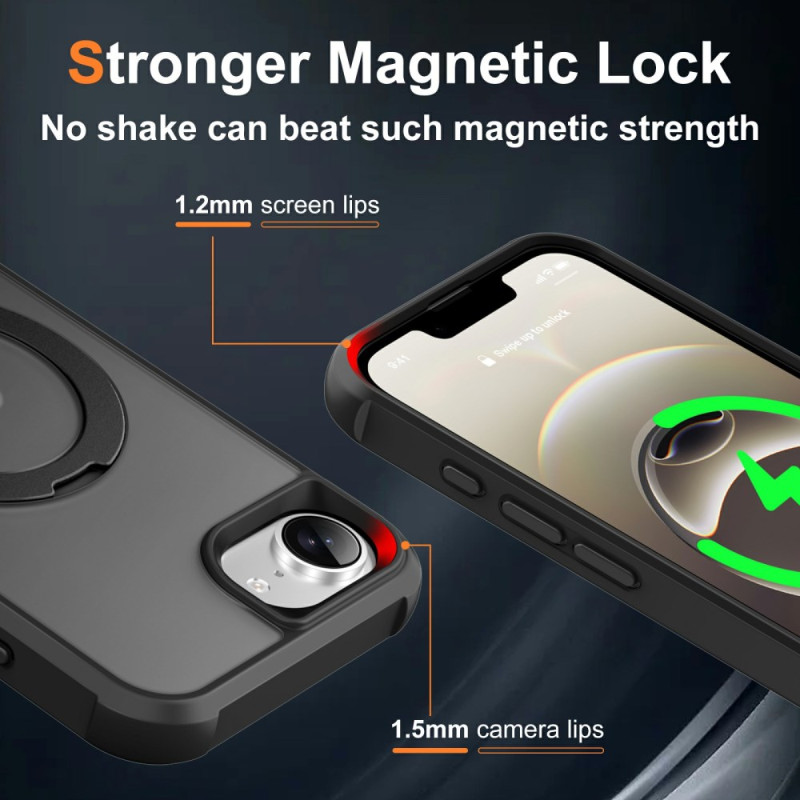 Tutustu premium-suojakoteloon iPhone 16E:lle. MagSafe-yhteensopiva suojakotelo tarjoaa optimaalisen suojan iskuja ja putoamisia vastaan. Sen integroitu pyörivä jalusta mahdollistaa handsfree-katselun useista eri kulmista. Korotetut reunukset suojaavat näyttöä ja kameraa, ja pölytiivis rakenne säilyttää äänenlaadun.