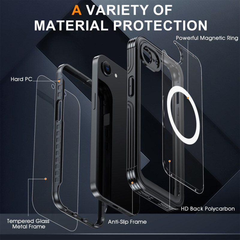 Tutustu iPhone 16e -puhelimen premium-koteloon, jossa yhdistyvät kestävä suojaus ja tyylikäs muotoilu. Laadukkaasta PC:stä ja TPU:sta valmistettu suojakotelo tarjoaa täyden suojan, pitää puhelimesi upean näköisenä ja sisältää karkaistun lasisen näytönsuojan. Yhteensopiva langattoman MagSafe-latauksen kanssa, tässä kotelossa yhdistyvät toiminnallisuus ja tyyli.