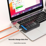 Tutustu innovatiiviseen latauskaapeliin, jossa on integroitu käsihihna. Tässä 2-in-1-tarvikkeessa yhdistyvät käytännöllisyys ja suorituskyky, ja se tarjoaa nopean 27 W:n latauksen ja Type-C-L-porttiyhteyden.