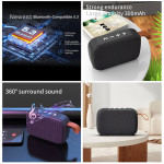 Enceinte portable polyvalente avec connectivité Bluetooth 5.3, radio FM, lecture USB et carte TF. Certifiée IPX6 pour une résistance optimale à l'eau, elle délivre un son stéréo puissant de 3W. Design compact et léger (140g) pour vous accompagner partout.