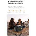 - Monipuoliset toistovaihtoehdot: Voit valita viidestä eri toistotilasta: TF-kortti, Bluetooth, FM-radio, USB-tikku tai AUX-tulo, jolloin voit nauttia musiikista, podcasteista tai radioasemista monella eri tavalla.