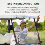 Nauti voimakkaasta 15 W:n äänestä golfkierrosten aikana tämän IPX7-vedenpitävän magneettikaiuttimen avulla. Siinä on Bluetooth 5.0, integroitu mikrofoni handsfree-puheluita varten ja 12 tunnin akunkesto, ja se on helppo asentaa....