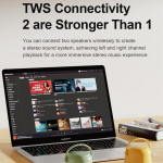 Tämä kompakti, kestävä ja metallista valmistettu EWA-kaiutin käyttää Bluetooth 5.0 -standardia, joka tarjoaa vakaan tiedonsiirron ja alhaisen virrankulutuksen. Sen optimoitu sisäinen rakenne ja 3 W:n neodyymikaiutin tuottavat yllättävän voimakkaan äänen näin pieneen kokoon nähden. Bassoa vahvistetaan alaspäin suuntautuvalla passiivisella säteilijällä, joka antaa täyteläisemmän ja resonoivamman soinnin. Se on ihanteellinen musiikin kuunteluun liikkeellä, ja sen akun kesto on noin neljä tuntia. TWS-toiminnon avulla voit yhdistää kaksi kaiutinta ja nauttia aidosta stereoäänestä.