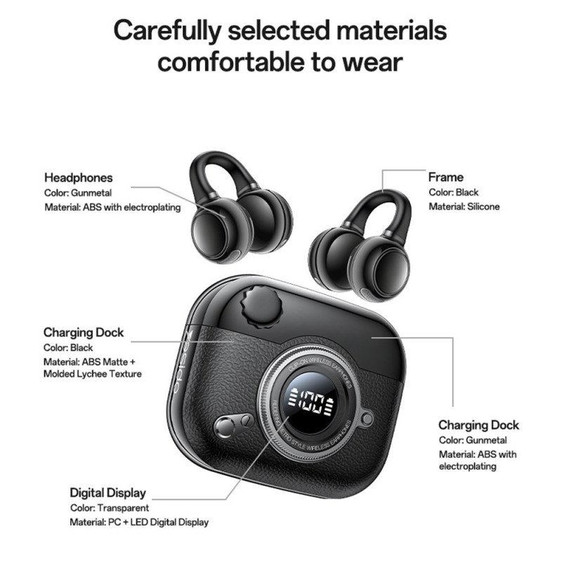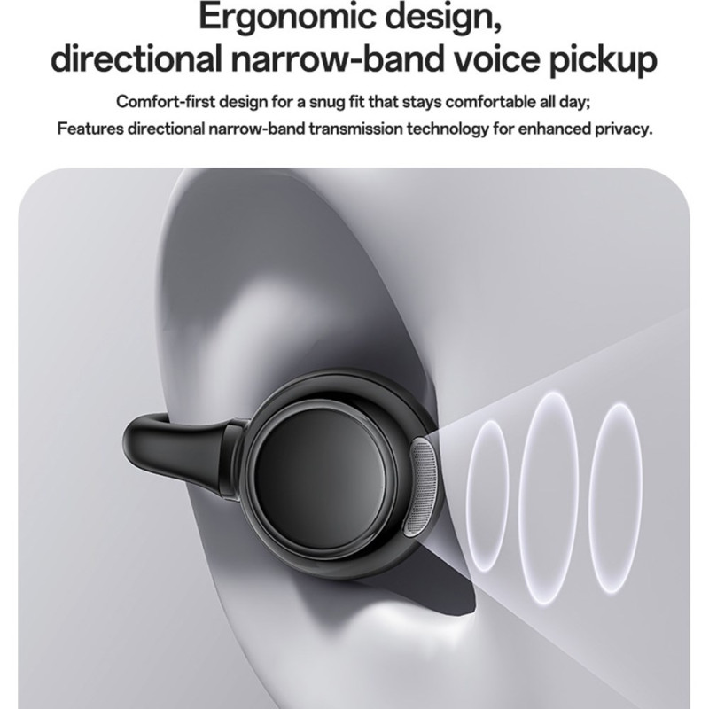 Les écouteurs sans fil YESIDO YSP31 offrent un confort exceptionnel grâce à leur design open-ear à clip, léger et parfaitement sécurisé pour un port prolongé. Leur finition électroplaquée haut de gamme apporte une touche élégante et moderne, tandis que l’affichage en temps réel du niveau de batterie apporte une vraie praticité au quotidien. Dotés d’un haut-parleur de 11 mm, ils délivrent un son immersif et naturel, idéal pour la musique comme pour les appels. Leur conception ergonomique, associée à une technologie de réduction de bruit directionnelle, garantit des conversations claires tout en préservant votre intimité. Parfaits pour le travail, le sport ou les déplacements.