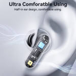 YESIDOn puolikorvakuulokkeissa yhdistyvät mukavuus ja monipuolisuus, joten ne sopivat erinomaisesti sekä ammatti- että urheilukäyttöön. Läpinäkyvän latauskotelon ansiosta akun varaustaso on heti nähtävissä, mikä helpottaa päivittäistä hallintaa. 13 mm:n kaiuttimet tuottavat selkeän stereoäänen, ja mikrofonit takaavat selkeät puhelut. Akun kesto on noin 4,5 tuntia latausta kohden, ja kosketusherkät säätimet helpottavat pääsyä tärkeimpiin toimintoihin.