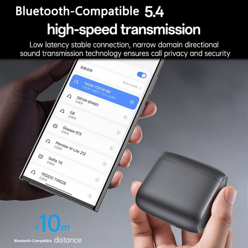 YESIDO YSP28 -kuulokkeissa on avoin muotoilu, jossa yhdistyvät ammattikäyttö ja urheilukäyttö, ja se tarjoaa mukavan kuuntelun ilman korvaan asettamista. Ainutlaatuisen mikrofonin tarjoama ENC-melunvaimennus takaa selkeämmät puhelut rajoittamalla ympäröiviä ääniä. 12 mm:n titaanikalvokaiutin tuottaa tarkan HiFi-äänen. Muoto-muistikoukut mukautuvat luonnollisesti käyttäjän vartalon muotoon. Akun kesto on jopa kuusi tuntia, ja sitä täydentää 450 mAh:n latauskotelo. Korkealuokkainen viimeistely parantaa tuotteen kestävyyttä ja estetiikkaa.
