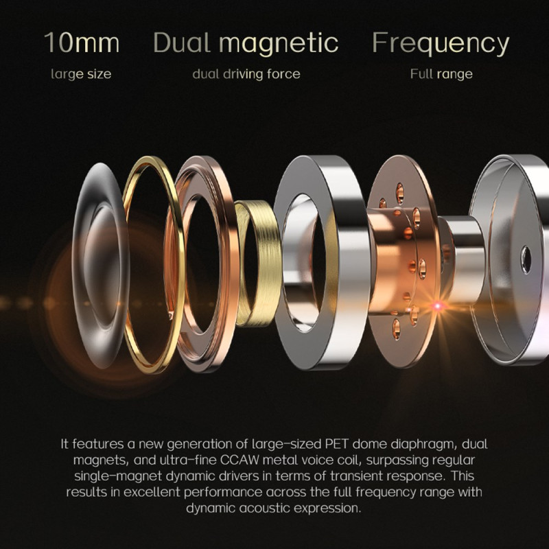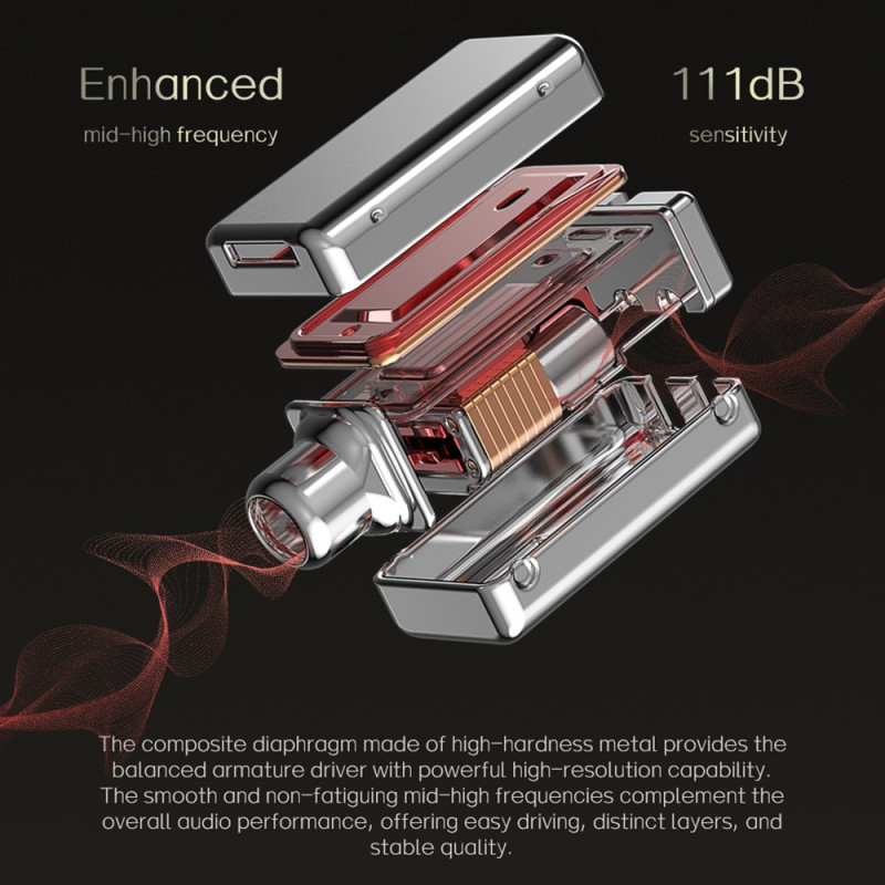 ND Nice -kuulokkeissa yhdistyvät dynaaminen ohjain, jossa on suuri kalvo, ja tasapainotettu ankkuriajuri, jotka kattavat laajan kaistanleveyden ja tuottavat samalla tarkan ja ilmeikkään äänentoiston. Niiden 3D-tulostettu akustinen kammio optimoi sisäiset virtaukset vakaata, täyttä ja yksityiskohtaista äänentoistoa varten. Akustinen säätö suosii laulun selkeyttä ja tarjoaa lämpimän, tasapainoisen kuuntelun. Sinkkiseoksesta valettu ja peilipintainen etulevy on kestävä ja esteettisesti miellyttävä. 2-pinnisen 0,75 mm:n liitännän ansiosta kaapeli on helppo vaihtaa tai päivittää Bluetooth-moduuliin.